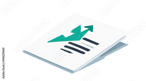 Isometric Illustration of a Document Showing Growth and Progress