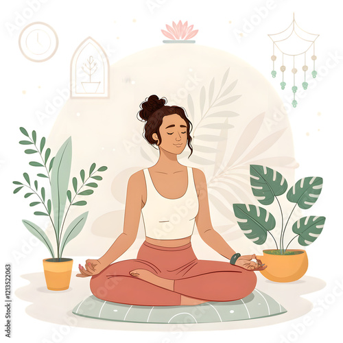 It is a peaceful scene of a person meditating in a calm pose, radiating mindfulness and inner balance in a serene setting.