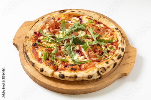 italian pizza with arugula on a white background