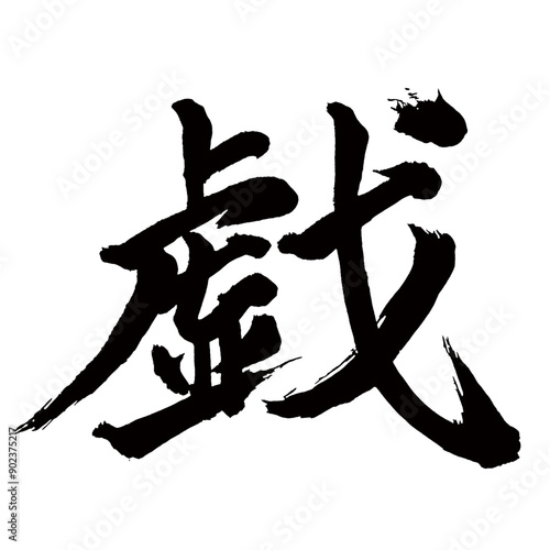 Japan calligraphy art【희・play】日本の書道アート【戯・ギ・戯れる・たわむれる】/This is Japanese kanji 日本の漢字です/illustrator vector イラストレーターベクター