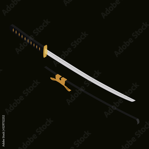 Japanese katana sword vector. Samurai sword, traditional weapon