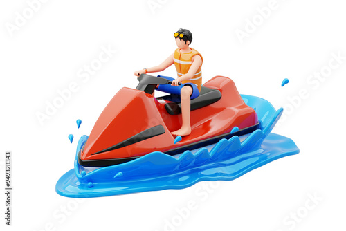 Jet Skiing 3D Character Illustration.