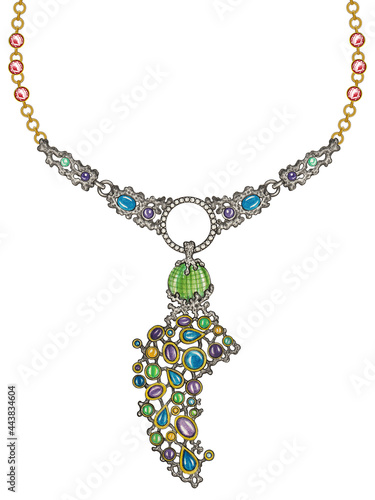 Jewelry design fashion art necklace. Hand drawing and painting on paper.