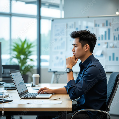 Joven hispano trabajando en un informe financiero