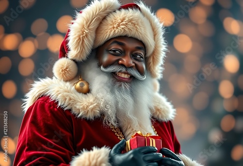 Joyful Black Santa: Festive Portrait with Gift