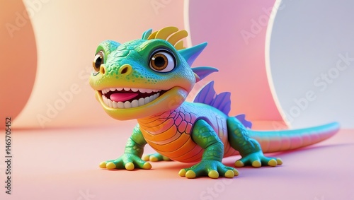 Joyful Rainbow Dragon: A Whimsical 3D Render
