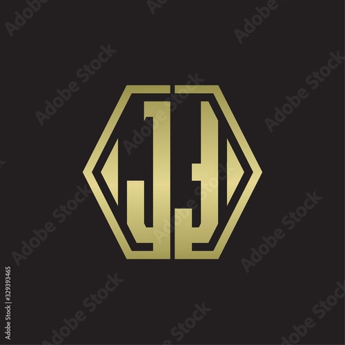 JT Logo monogram with hexagon line rounded design template with gold colors