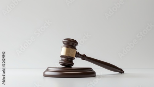 Judge's hammer, shown against a white background, symbolizing fairness, the law, and authority.