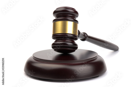 Judge's hammer with financial concept isolated on white background.