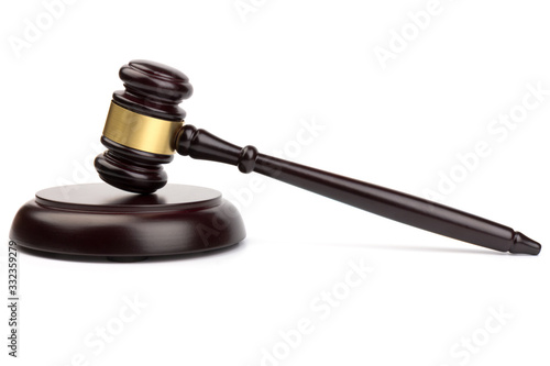 Judge's hammer with financial concept isolated on white background.