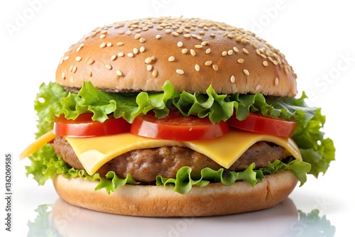 Juicy Cheeseburger Sesame Bun, Patty, Cheese, Lettuce, Tomato