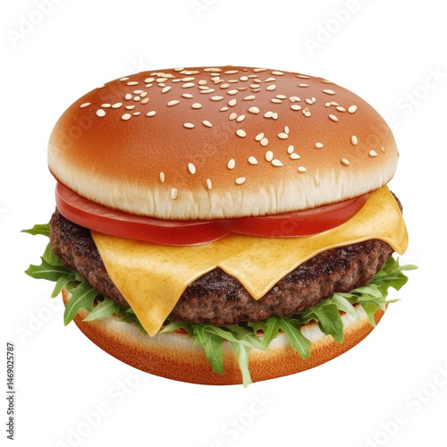 Juicy cheeseburger with fresh ingredients and toppings, showcasing a perfectly grilled patty and flavorful assembly isolated on transparent background..
