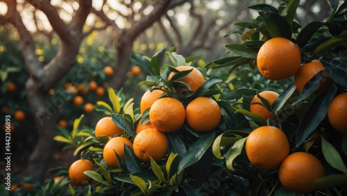 Juicy orange fruit on a plant