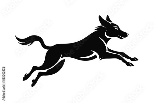 jumping dog line art silhouette vector illustration