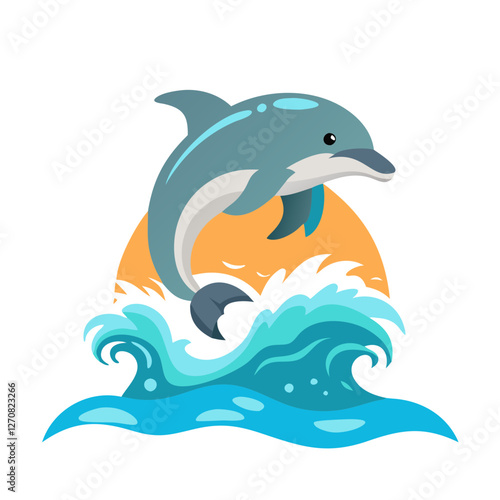 Jumping Dolphin Clipart: Marine Life and Sea Waves Design