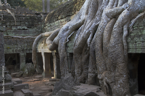 Jungle and giant tree rootsd cover parts of the Ta Prohm temple complex.nearSiem Reap,Cambodia