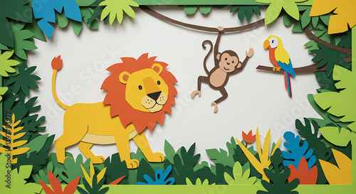 Jungle Animals in Paper Cut Style