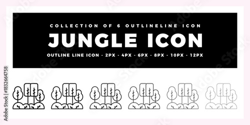 Jungle Icon Set. 6 Outline Line Icons Pack