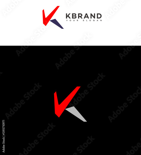K Letter Logo Design Red, Grey, Checkmark, Modern, Abstract, Minimalist, Initial, Letter K, Branding,
