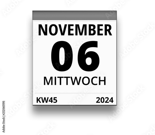 Kalender für Mittwoch, 6. NOVEMBER 2024 (Woche 45)