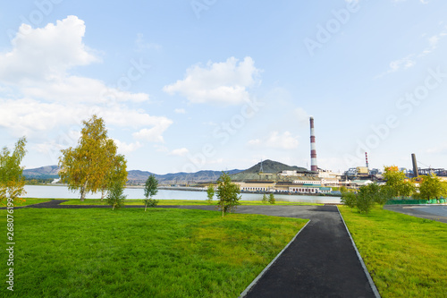 Karabash city in summer, view of the copper plant. The dirtiest city in the world. Horizontal photography