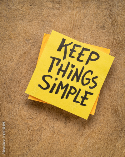keep things simple - handwriting on a reminder note, simplicity, minimalism or lifestyle concept