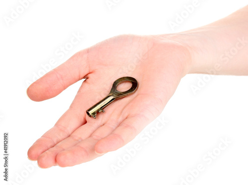 Key in hand isolated on white