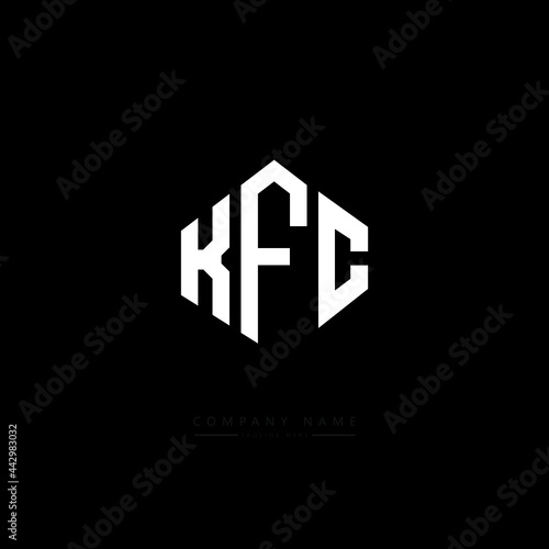 KFC letter logo design with polygon shape. KFC polygon logo monogram. KFC cube logo design. KFC hexagon vector logo template white and black colors. KFC monogram, KFC business and real estate logo.
