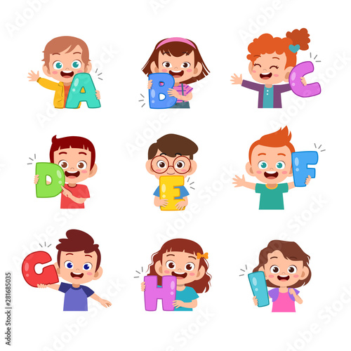 kids holding alphabet vector illustration