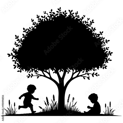 Kids Play Under Tree Silhouette.