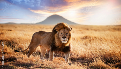 King of the jungle - beautiful majestic lion with exotic background