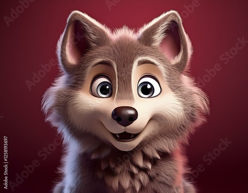 Kleiner niedlicher Wolf, bordeaux Hintergrund