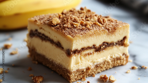 Krem bananowy w harmonii z chrupiącymi dodatkami buduje deser, który zachwyca zarówno smakiem, jak i strukturą.