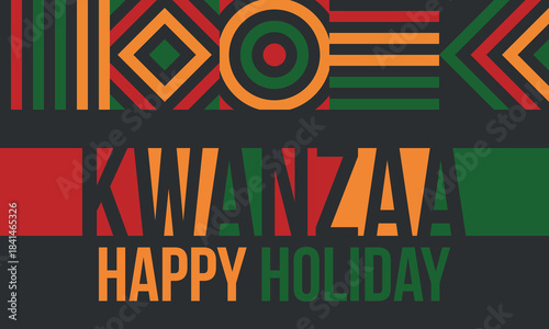 Kwanzaa Happy Celebration. African and African-American culture holiday. Seven days festival, celebrate annual from December 26 to January 1. Black history. Poster, card, banner and background. Vector