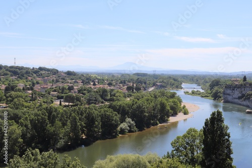 La riviere Ardeche vue depuis le village de Aigueze, village de Aigueze, departement du Gard, France