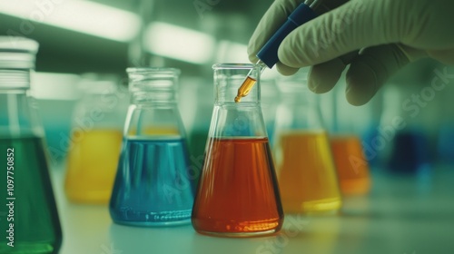 Laboratory experiment – colorful solutions in glass test tubes science environment close-up