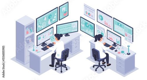 Laboratory research analysis vector illustration – modern isometric style for educational design