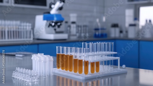 Laboratory Setting with Test Tubes and Microscope on Workbench