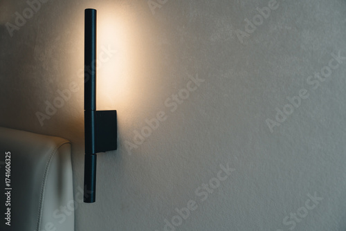 lamp in hotel. Modern wall lamp design illuminating textured wall in contemporary interior setting for stylish home lighting solution