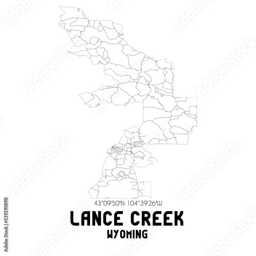 Lance Creek Wyoming. US street map with black and white lines.