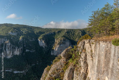 Landscape of a wild and preserved valley, canyon in the Cevennes national park. Gorges de la Jonte.