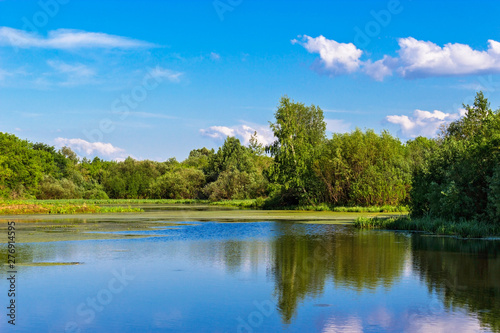 landscape of the swamp lake in summer day