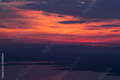 Landscape of Ubonrat dam. Khonkaen Province., Thailand. Sunset Time