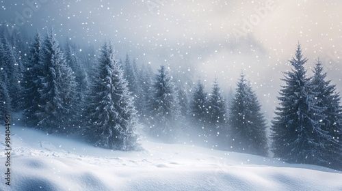 landscape with a pine tree forest in the snow
