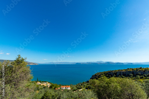 Landscape with small greek islands and bays on Peloponnese, Greece near Arkadiko town, summer vacation destination