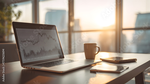 Laptop displaying stock market data on office desk