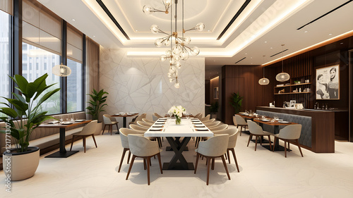 large dining table interior design in restaurant. Generative AI