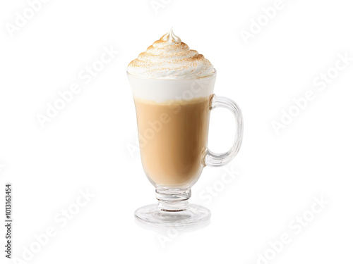 Latte A creamy latte in a tall elegant glass with a heart shaped foam art