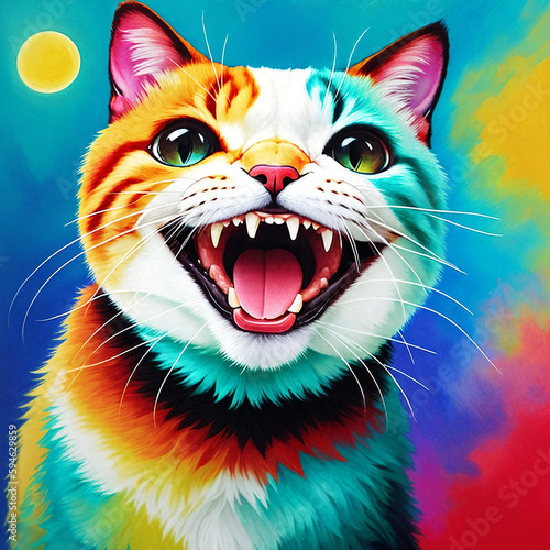 laughing cat abstract colorful vibrance painting with generative AI technology