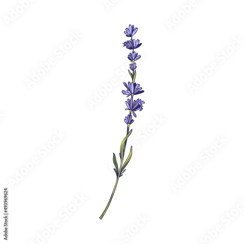 Lavender elegant flower branch, hand drawn sketch vector illustration isolated on white background.